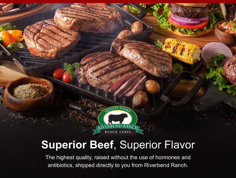 Riverbend Ranch Black Label Beef delivers a steakhouse experience at home. Imagine the tenderness and flavor of a fine New York City steakhouse—without compromise.